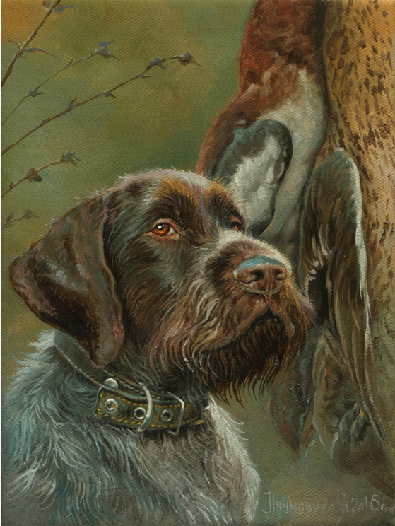 Картина Дратхаар, охота на уток