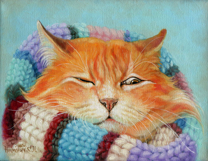 •  Картина Рыжий кот в шапочке
